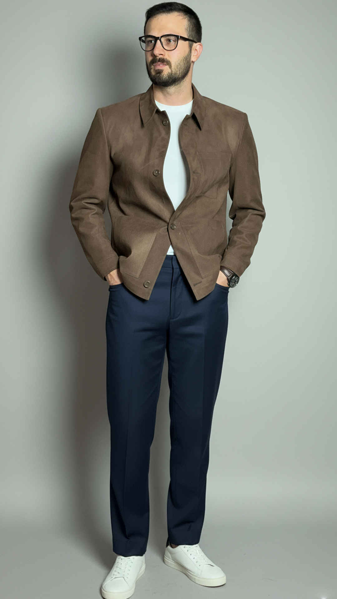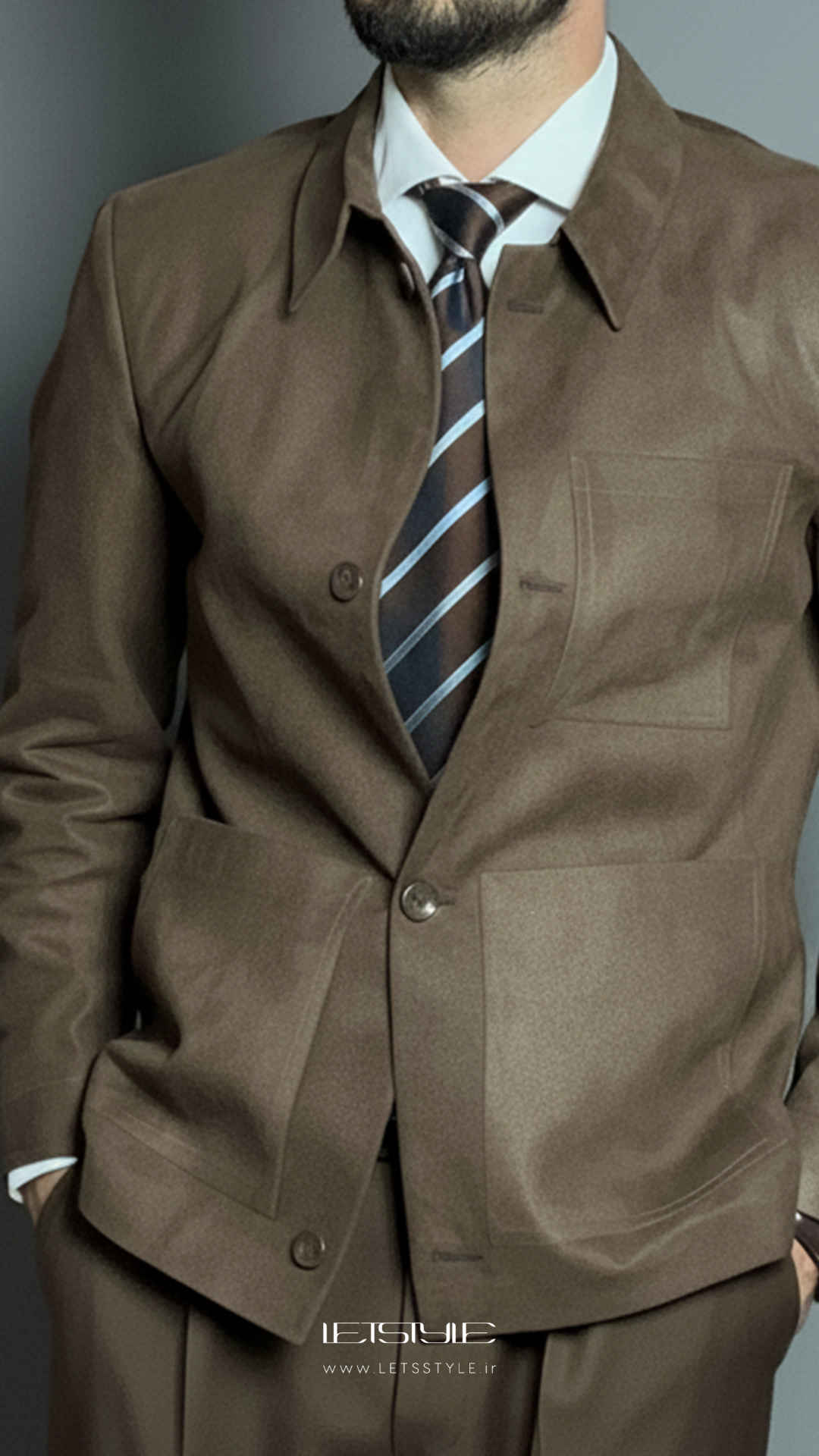 کت جیر قهوهای را میتوانید با شلوار جین یا فاستونی برای استایل نیمهرسمی، و با پیراهن سفید یا کرم برای استایل رسمیتر ست کنید. مناسب برای محل کار، قرارهای مهم یا استایل روزمرهی خاص.